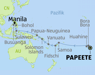 - Verpflegung: Frühstück (Tahiti und Philippinen) bzw. Vollpension mit Frühstück, Mittag- und Abendessen, Kaffee und Kuchen je nach Programm, Snacks, Kaffee/Tee und Säfte zum Frühstück (Schiff)